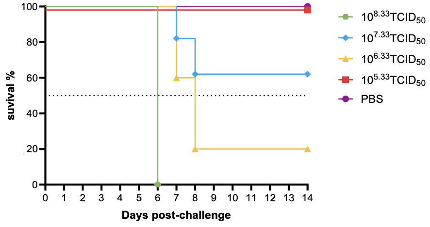 图5. 用流感小鼠适应株H3N2-1968感染Balb/C小鼠生存率